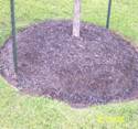 around trees and shrubs. The correct amount of mulch retains moisture in